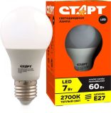 Лампа СТАРТ LEDGLSE27 7W 30 WS светодиодная теплый белый свет,форма-груша,560Лм // 17294
