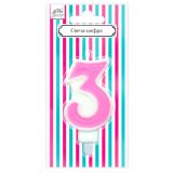 Свеча-цифра "3", "Веселая вечеринка", розовый