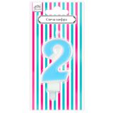 Свеча-цифра "2", "Веселая вечеринка", голубой