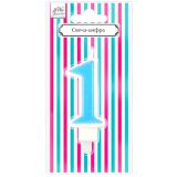 Свеча-цифра "1", "Веселая вечеринка", голубой