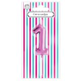 Свеча-цифра "1", "Веселая вечеринка", розовый