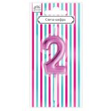 Свеча-цифра "2", "Веселая вечеринка", розовый
