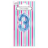 Свеча-цифра "3", "Веселая вечеринка", голубой