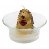 Свеча чайная "Забавный ежик" в стеклянном подсвечнике НАБОР 3шт в ассортименте